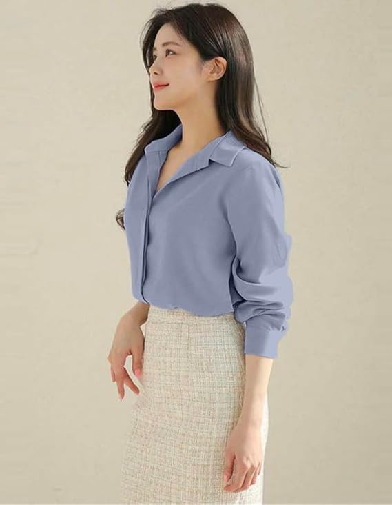 - Elegant Korean Style Design – This women’s shirt features a clean concealed placket for a minimalist, polished look. Inspired by Korean fashion trends, it brings understated sophistication to your wardrobe.